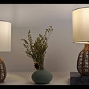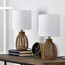 13" Rustic Rattan Small Table Lamps – Set of 2