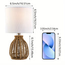 Add cozy charm to your bedroom or reading nook with this Set of 2 Rustic Rattan Table Lamps. These mini farmhouse-style lamps feature a hand-woven boho paper rope base paired with a clean white drum-shaped fabric shade. Designed for compact spaces, they bring a warm, rustic vibe while offering functional lighting for bedtime reading or ambient glow. Ideal for nightstands, side tables, or study corners.