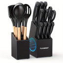 18pcs TUOMEIST Stainless Steel Knife Set with Wooden Handles Lamp; Removable Utensil Holderr