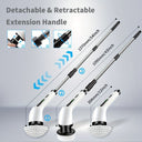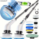 Effortlessly clean various surfaces with the Wireless Spin Scrubber, featuring a powerful 2600mAh rechargeable lithium battery and adjustable extension handle. With 9 replaceable brush heads, it tackles grime and dirt on bathtubs, tiles, glass, floors, and even cars. Perfect for deep cleaning with ease and precision.