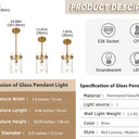 POMITOS Modern Adjustable Glass Pendant Light Fixture – E26 Base, Semi Flush Mount (Hardwired, No Bulb Included)