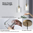 Modern Brass & Crystal Pendant Light – Adjustable Glass Chandelier for Kitchen Islands, Dining & Living Spaces