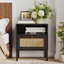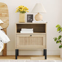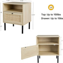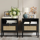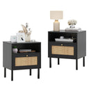 Natural Rattan Nightstand Set of 2 – Boho Bedside Tables with Handwoven Doors