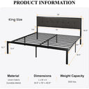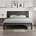 Bed Frame with Upholstered Headboard, Platform Bed Frame with Metal Slats, Button Tufted Square Stitched Headboard, Noise Free