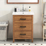 Upgrade your bathroom with the 24'' Bathroom Vanity with Ceramic Basin Sink, a freestanding storage solution featuring a sleek wood-tone finish and a durable ceramic sink. Designed with 3 spacious drawers, this vanity blends modern style with everyday functionality. 🛁🪵✨