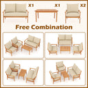 4 PCS Acacia Wood Patio Furniture Set with Soft Cushions and Coffee Table