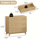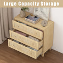 Rattan Dresser with 3 Drawers – Rustic Boho Wooden Storage Organizer