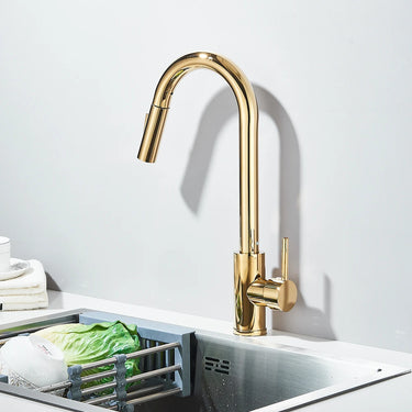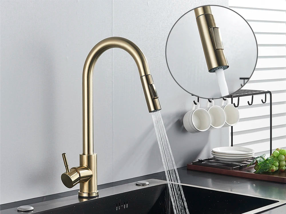 Upgrade your kitchen with the SAFLIHCAR Brass Pull-Out Kitchen Faucet, offering modern style, flexible functionality, and smooth performance for everyday kitchen tasks.
