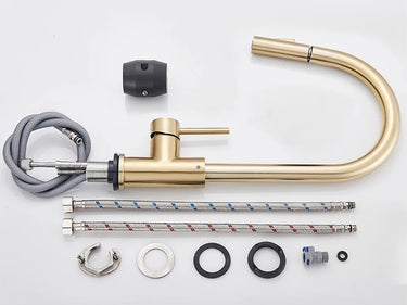 SAFLIHCAR Brass Pull-Out Kitchen Faucet – Flexible Spout, Single Handle, Hot & Cold, Deck Mounted
