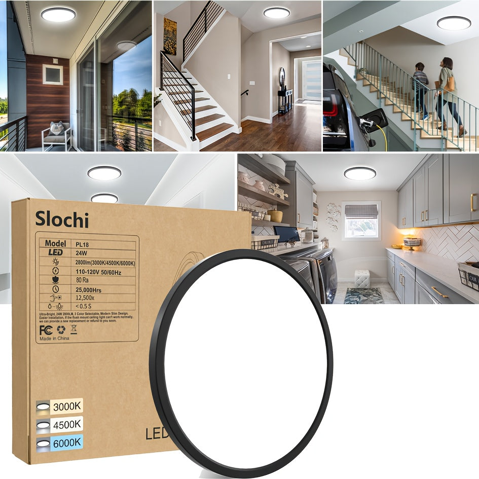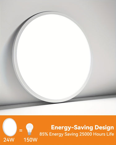 Brighten your home with the Modern Slim LED Flush Mount Ceiling Light. Delivering 2800 lumens at just 24 watts, it replaces 150W bulbs while saving up to 85% energy. Ideal for bedrooms, kitchens, hallways, and living areas.