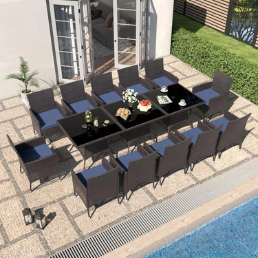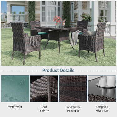10-Piece Indoor/Outdoor Dining Table Set, Garden Patio Rattan Set with W/Tempered Glass Tabletop with Removable Cushions