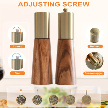 Wooden Salt & Pepper Mill Set – Adjustable Grind, Gold Accent, Refillable Design