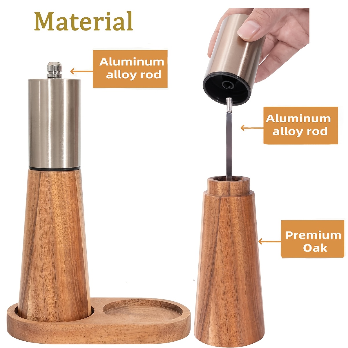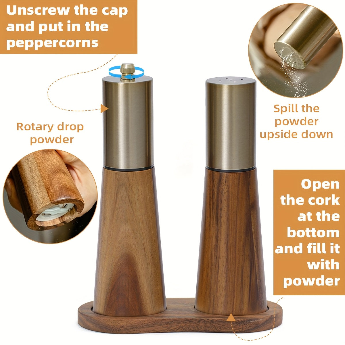 • Refill Method: Bottom-fill salt shaker, top-adjust grinder