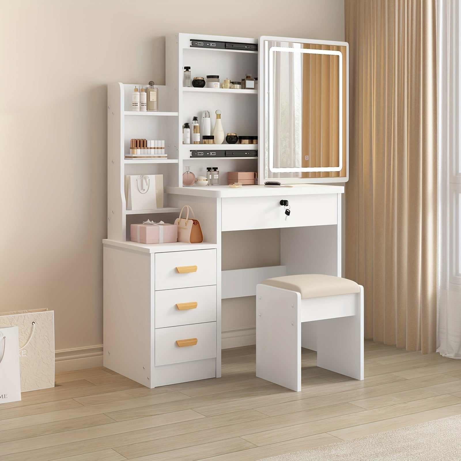 Modern White Wooden Storage Cabinet – Plug-Powered, Independent Design, Assembled