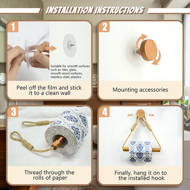 Nail-Free Hemp Rope Paper Towel Holder - Bathroom Towel Hook & Toilet Paper Rack